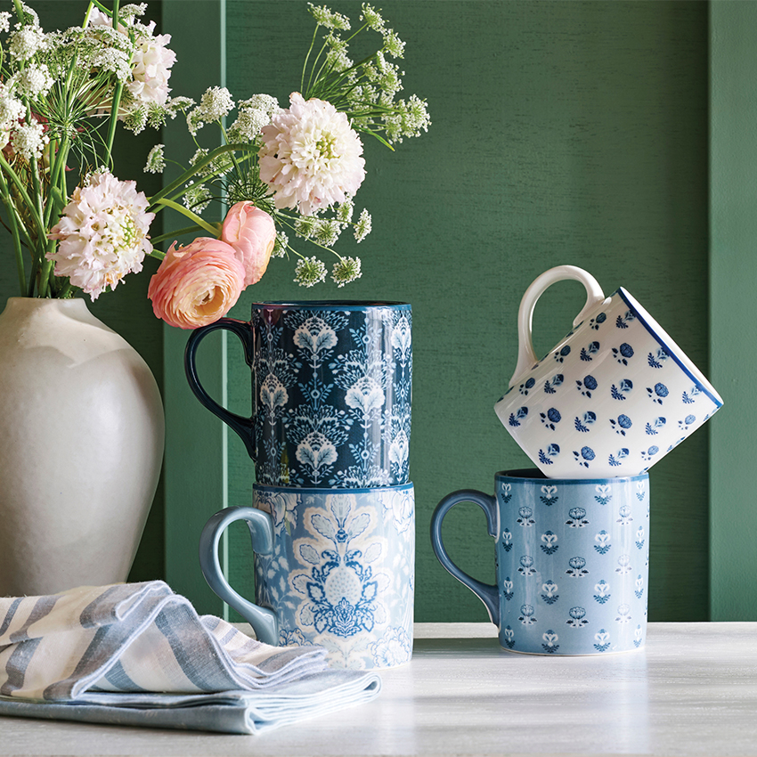 above: Kravet Dinnerware Collection: Dinner Plates, Salad Plates, Mixed Appetizer Plates, Mixed Mugs